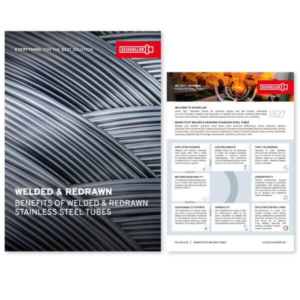 Want to learn more? Our ePaper about “Welded and redrawn stainless steel tubes” provides a concise, detailed overview of the advantages of welded and redrawn stainless steel tubes.