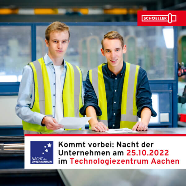 Am 25.10.2022 findet von 17 – 20:30 Uhr die „Nacht der Unternehmen“ im Technologiezentrum Aachen statt. Gemeinsam mit dem @kreiseuskirchen ist unser Team von Schoeller auch am Start und freut sich auf zahlreiche Gespräche mit euch!